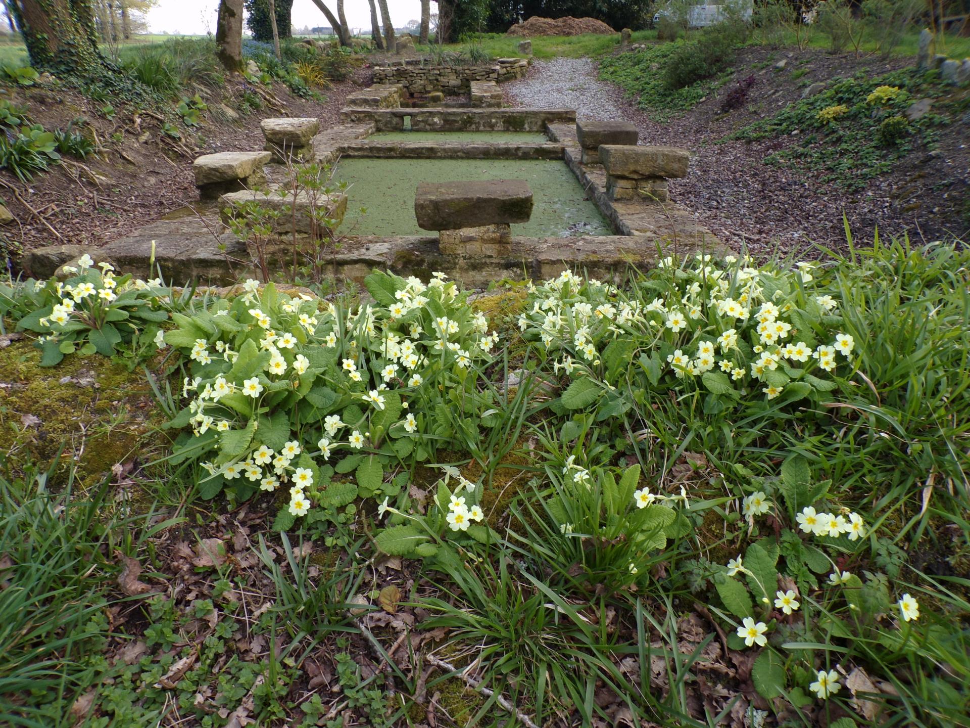 Entourage de pierres autour de l, ile centrale et enrochement péripherique.